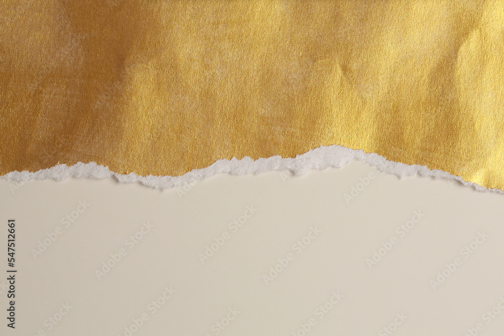 Torn pieces of paper texture copy space background. Beige and gold color.