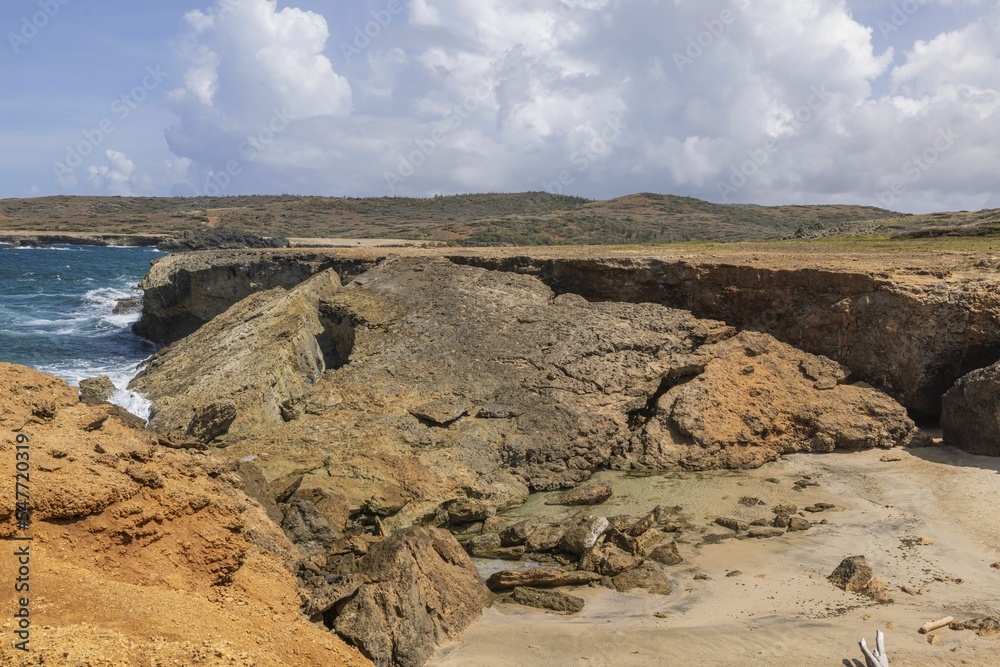 Beautiful rocky coastline natural landscape view. Atlantic Ocean, Aruba.