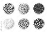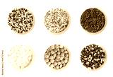 Sugar and chocolate sprinkles, in white bowls. Tiny chocolate balls, nonpareils, rod-shaped sugar and choco sprinkles, white choco hearts, and colorful button-shaped candies. Decoration and toppings.