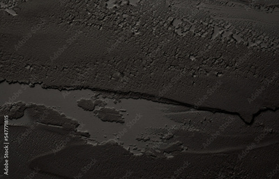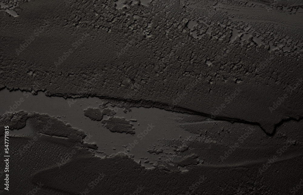 Black Oil and Acrylic smear blot brushstroke painting wall. Abstract relief grain, texture color stain horizontal copy space canvas background.