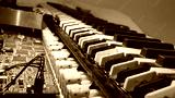 Cleaning dirty old synthesizer keys. Disassembly and keyboard repair. Keybed close up shot.