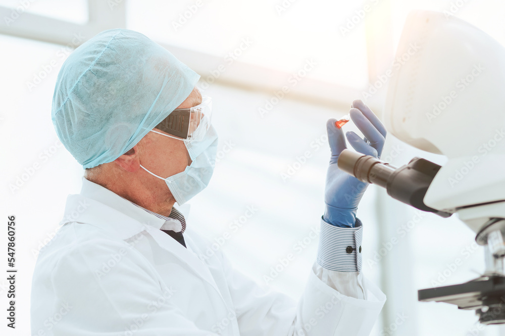 close up. scientist in testing a new drug in the lab .