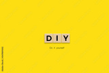 Do It Yourself (DIY) Banner. Letter Tiles on Yellow Background. Minimal Aesthetics.
