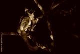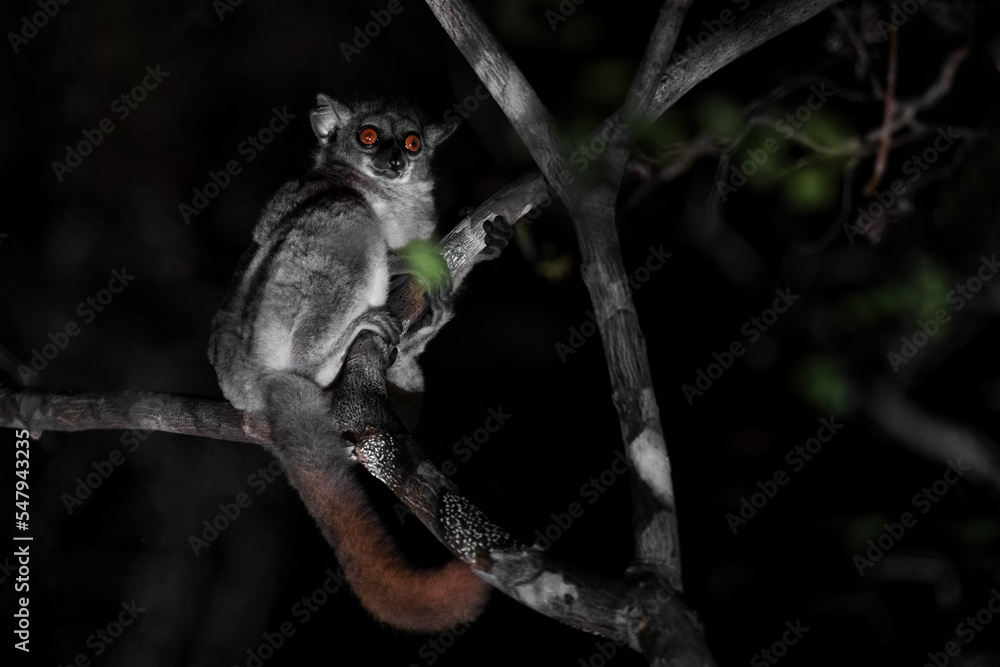 Red-tailed Sportive Lemur - Lepilemur ruficaudatus, small nocturnal endemic Madagascar sportive lemur hidden in the tree.