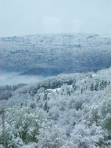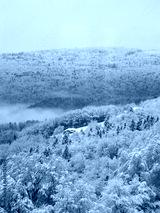 Idyllic view of hilly landscape covered with snow blanket after winter snowfall