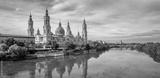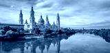 Zaragoza, panorama city landscape at sunset- Aragon in Spain