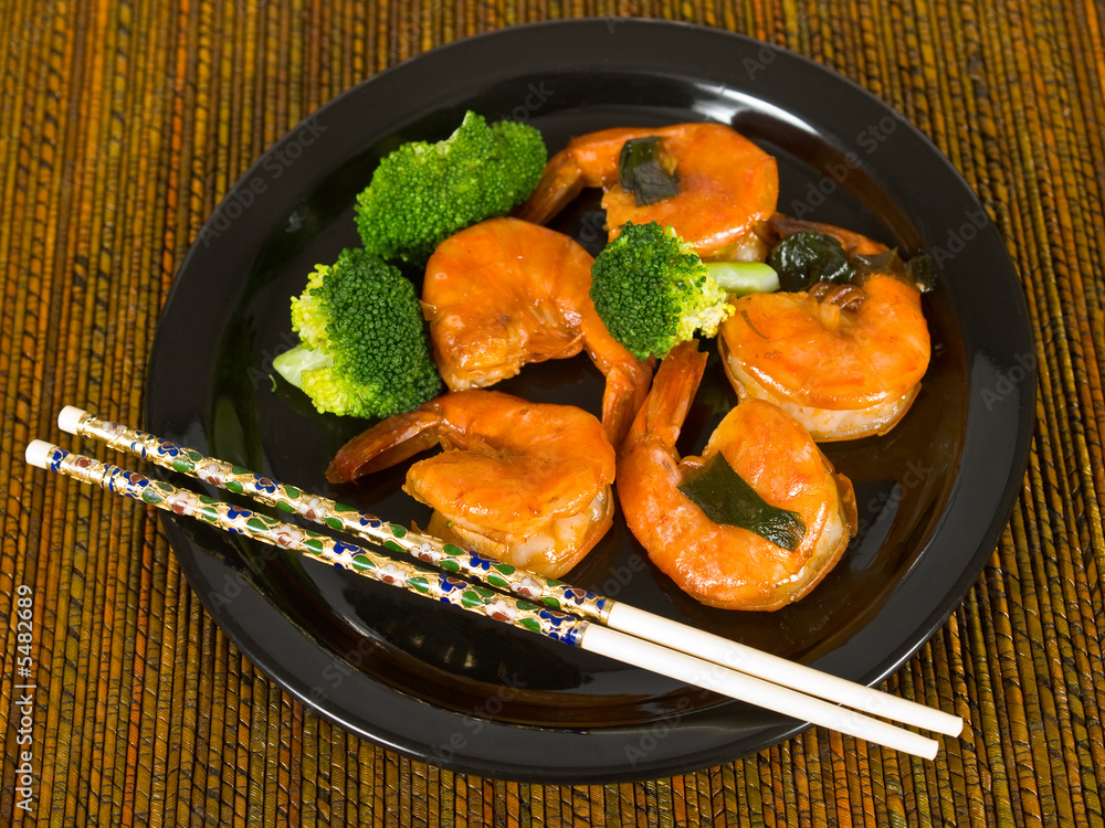 Jumbo Shrimp and Broccoli on a plate