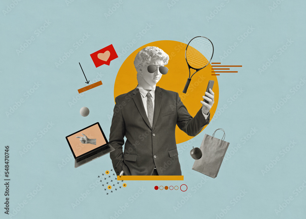 Creative collage modern business man with an antique david's head