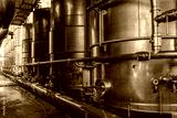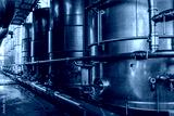 Steel tanks for wine fermentation at a modern winery. Large brewery silos for barley or beer