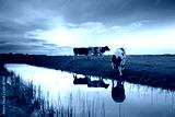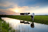 cows grazing on pasture at sunset