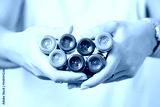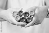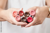 Tattoo ink. Pigments in bottles for tattoos and permanent makeup in woman hands