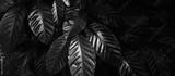 closeup nature view of green leaf and palms background. Flat lay, dark nature concept, tropical leaf