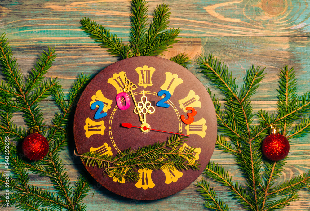 The clock is 5 minutes before the New Year with a place to copy.