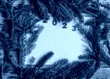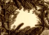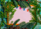 Christmas wooden background with fir branches and a place to copy.