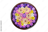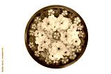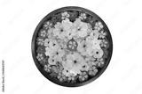 Ornately decorated exotic flower bowl, close-up.