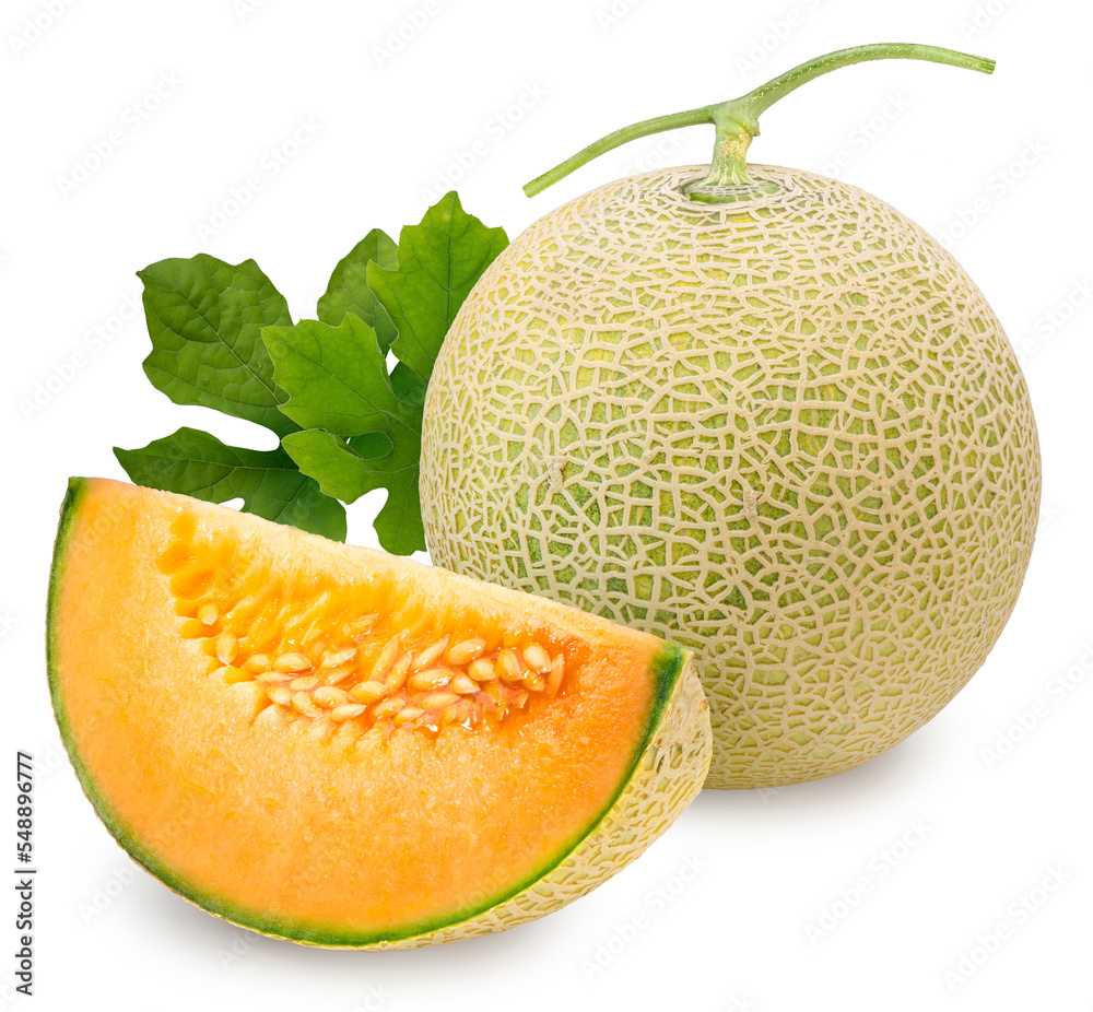 Japanese melon or cantaloupe isolated on white background, Sweet Hokkaido melons isolated on white background, With work path.