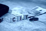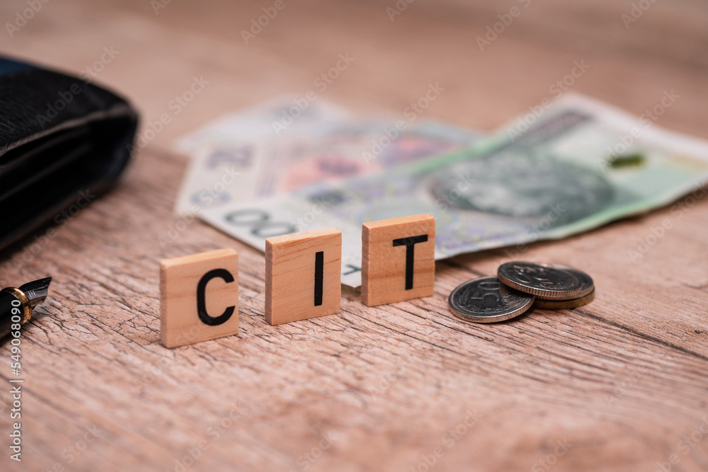 CIT inscription next to Polish money. CIT is a Corporate Income Tax. Concept showing the payment of taxes by enterprises.