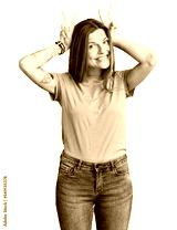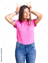Beautiful caucasian woman wearing casual clothes posing funny and crazy with fingers on head as bunny ears, smiling cheerful