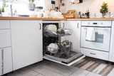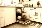 A lot of dirty dishes in the dishwasher. Helping the hostess, economy and ecology. Cleaning in the kitchen for the holidays of Christmas and New Year, after the feast and guests