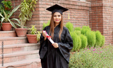 Young indian graduated girl holding his graduation degree convocation ceremony.
