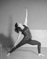 Portrait of gorgeous young woman practicing yoga indoor. Beautiful girl practice asana in class. Calmness and relax, female happiness.