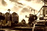 Hollywood Boulevard street landscape in Los Angeles, California, USA, black and white retro-style photo