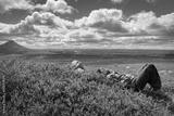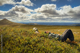 Man resting on hiking trip. Nipfjället nature reserve. Mountains in Idre, Sweden.