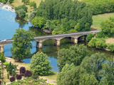 The banks of the Dordogne seen from the viewpoint at the top of the cliff and the gardens of the Royal Bastide of Domme in Périgord Noir
