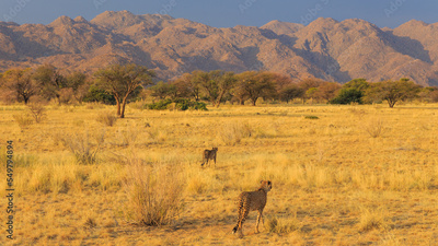 Cheetahs in the Namibian savannah, Solitaire, Namibia, South Africa.