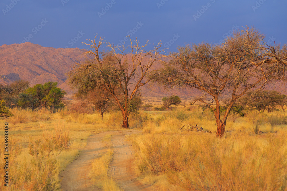 African landscape, savannah during beautiful sunset. Solitaire, Namibia.