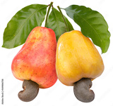 Fresh cashews and cashew nut with leafs on a white background, Fresh cashew nut on White Background PNG File.
