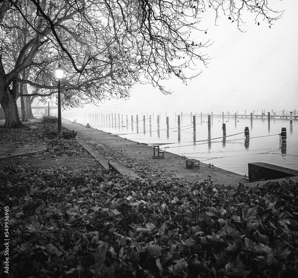 Foggy scenes of Balatonföldvár, Hungary in winter