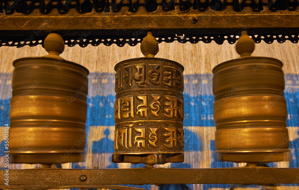 Buddhist prayer wheels in Swayambhunath