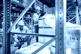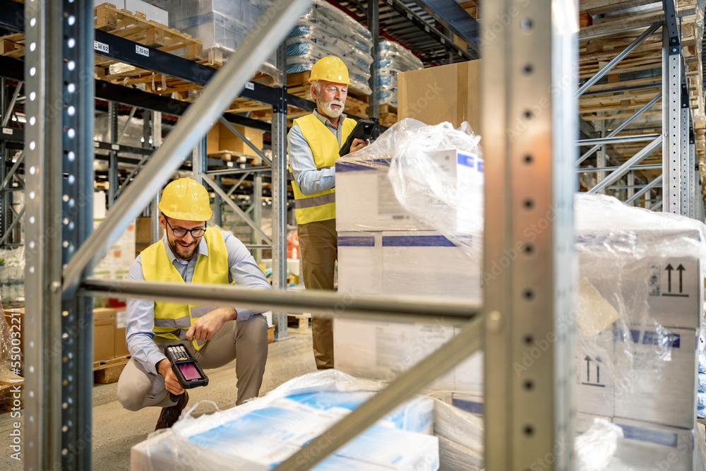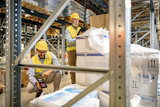 Warehouse workers scanning box