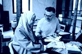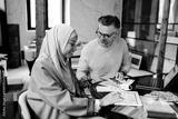 Two multinational colleagues working on computers together at cozy workshop