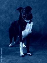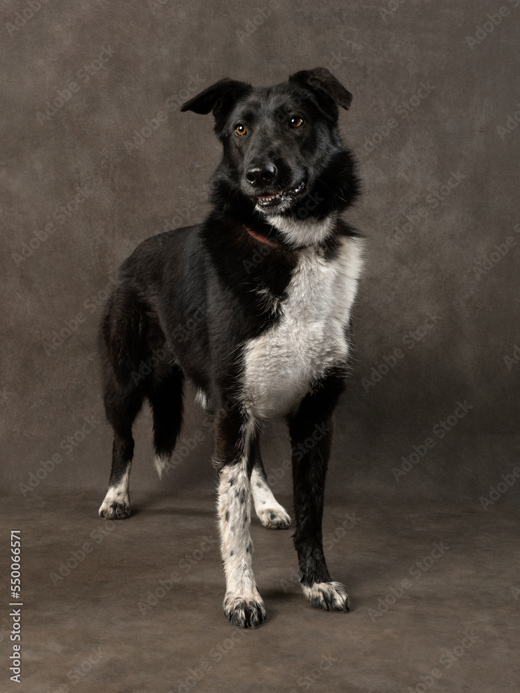 Portrait of a dog on a dark background, studio shot