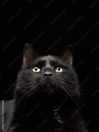 Portrait of a black cat on a black background, studio shot