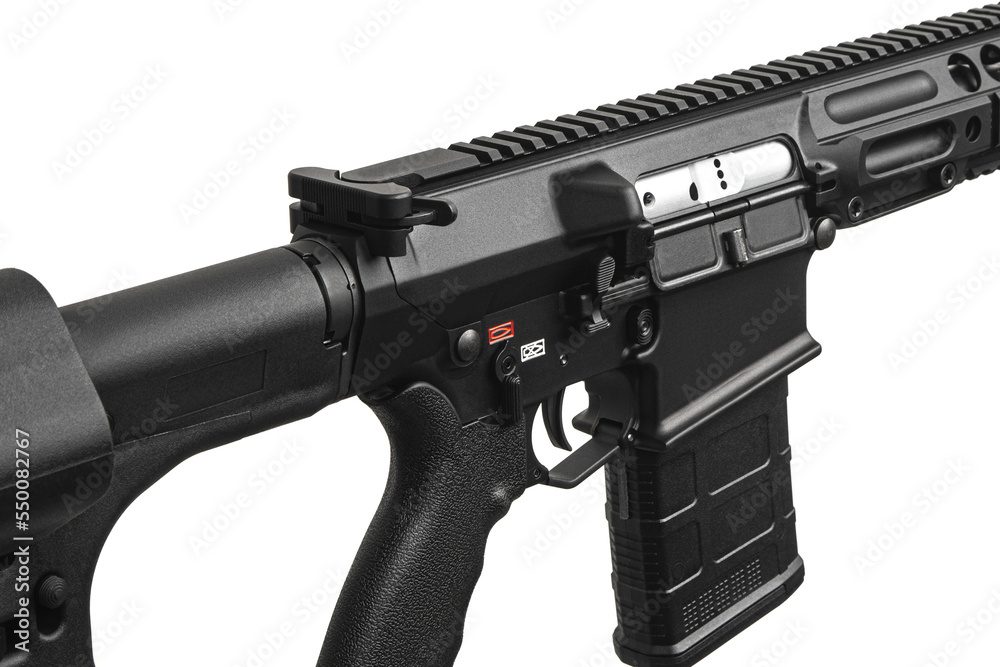 Modern automatic rifle isolated on white background. Weapons for police, special forces and the army. Automatic carbine. Assault rifle on white.