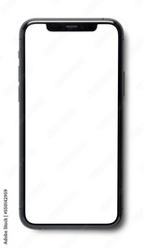 modern / contemporary black smartphone isolated over a transparent background, cut-out screen area - easily insert your contents! top view / flatlay business design element