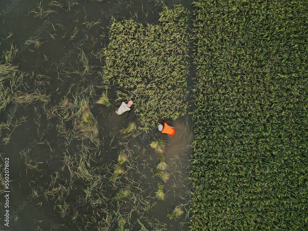 Aerial shot of flooded Area in Taherpur Sunamganj,Bangladesh
