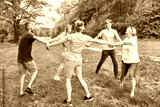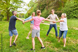 Junge Leute stehen im Kreis im Teambuilding Workshop