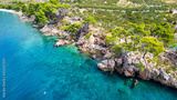 Rocky coast on the sea coast on a summer sunny day, Riviera Makarska, Croatia