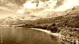 Aerial view of Brela and Punta Rata beach on Makarska riviera, Dalmatia region of Croatia
