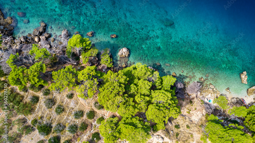 Rocky coast on the sea coast on a summer sunny day, Riviera Makarska, Croatia