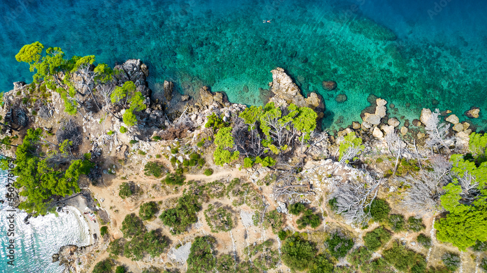 Rocky coast on the sea coast on a summer sunny day, Riviera Makarska, Croatia