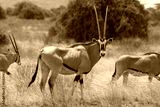 Antelope beisa oryx standing on yellow grass