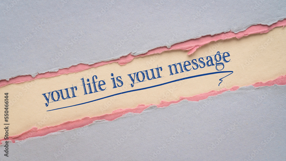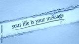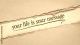 your life is your message - inspirational note on a rag paper, diagonal web banner, personal development concept