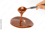 Woman hand hold a spoon with melting chocolate