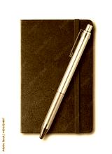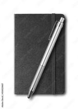 Marine blue closed notebook and pen isolated on white