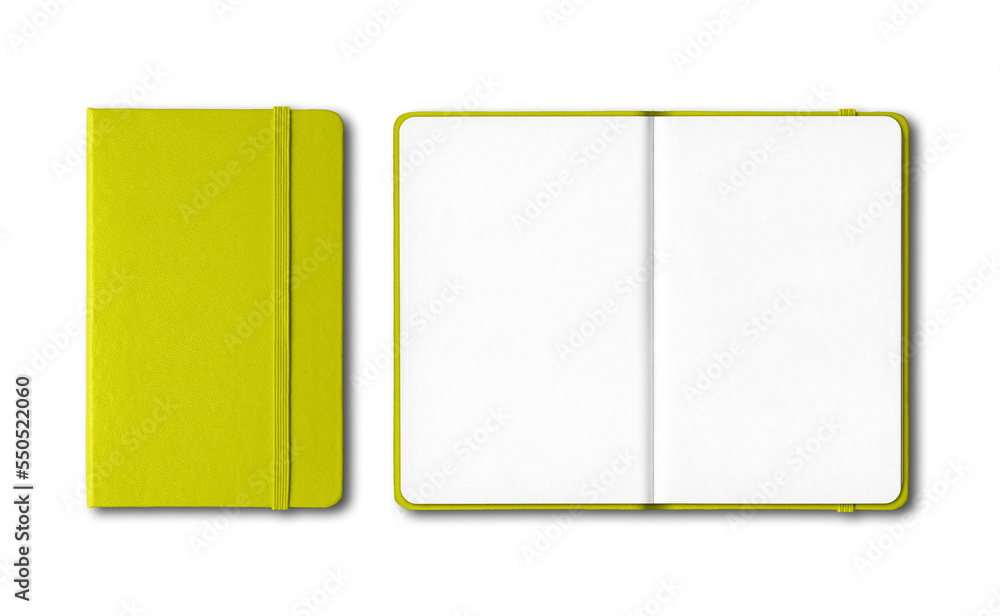 Light green closed and open notebooks isolated on transparent background
